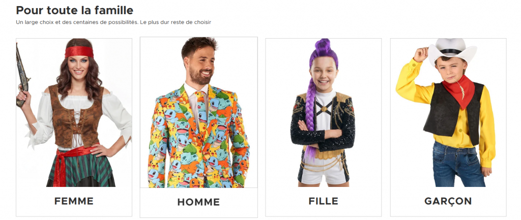 Overview of the products offered by Deguisetoi